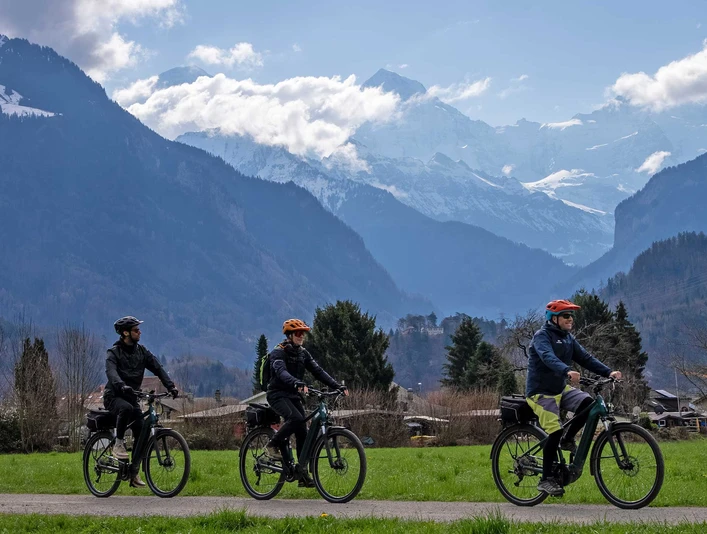 Experience the Holiday Region Interlaken on two wheels! The scenic e-bike tour takes you to the most beautiful places around Interlaken, past glittering lakes, through historic alleys and along breathtaking alpine panoramas. Along the way, a local guide will tell you fascinating stories about the Holiday Region Interlaken. You can also sample regional specialities such as cheese, chocolate and beer. Thanks to the e-bike, you can enjoy a relaxed and effortless ride through the countryside. An unforgettable experience for nature lovers and gourmets!