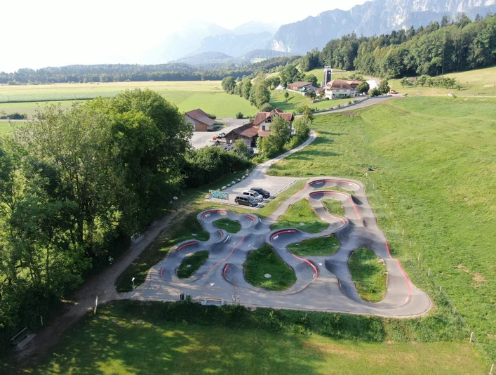 Steer the perfect line. From mountain bikes and BMXs to scooters and skateboards, the Thierachern pump track is a playground for anyone on wheels or rollers. Thanks to a combination of smooth jumps and turns, the pump track is suitable for riders of all abilities. Whether you are looking for an unconventional sport, an ideal practice ground for biking or some entertainment for the kids, you will surely find what you need at the pump track.