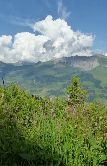 Adelboden is known for three things: the mineral water, the World Cup giant slalom race Chuenisbergli, and the Vogellisi. The Vogellisi is marketed for tourism: at the Vogellisi Trophy, hikers and users of mountain railways can participate in a competition. At the starting point of the hike, Adelboden Post, the last stop of the bus line from Frutigen, you take the Höreli route via Unterer Höreliweg Schwandfeldspitz. On some signposts, instead of the dialect name Höreli, the standard German term Hörnli is used. Moderately ascending, first on a forest road, then on paths, you reach Höreli. On this section, it is worth stopping and looking back at the Entschlige waterfall. At the Alpine garden, ascend left towards Tschentenegga and Tschentenalp, initially on a pleasantly laid footpath, later on a forest road to Tschentenalp. It is worth pausing to enjoy the view of the surrounding mountain peaks. Next, follow the signposts towards Schermtanne. This route is walkable in winter as well, as indicated by the symbols on the signposts. First flat, then descending on a path through meadows and forest, the paved road to Schermtanne is the next landmark: Do not turn left onto the paved road, but continue hiking straight ahead, mostly through the forest along the Stigelbach, over a footbridge and along the Allebach. A covered resting place invites a pause. If you are not looking for a relaxed experience but a thrill, you can visit the Adventure Park, a rope park, at Rehärti. At the entrance of the village Adelboden, after crossing the Allebach, the hike continues uphill on the Risetensträssli, then on the flat village road through Adelboden to the finish.