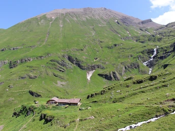 Generations of people have worked for centuries to wrest an alpine livelihood from this wild corner of the world, transforming a wilderness into a landscape of cultivated beauty. The region resembles a patchwork of expansive alpine meadows, species-rich wetlands and protected dry grasslands. In recognition of its diversity and attractiveness, the pasture was awarded the Cultivated Landscape Prize for the East Oberland region in 2019.
