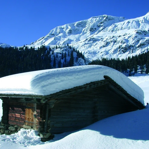Bei der Bahnstation Grütschalp gehts zunächst in leichtem Anstieg durch Wald, danach praktisch ebenen Wegs über die verschneiten Weiden der Bletschenalp. Einzigartig ist der Kontrast zwischen dem Tiefblick in das scharf U-förmig ausgeschnittene Lauterbrunnental und dem weiten Panorama der Gipfel, die das Tal abschliessen. Wuchtig erhebt sich aus dem Talgrund der Schwarzmönch, dahinter steht die von den beiden Silberhörnern majestätisch geschmückte Jungfrau. Im Osten von ihr liegen Eiger und Mönch zum Greifen nahe, im Westen setzt sich der Gipfelkranz mit Äbeni Flue, Mittaghorn, Grosshorn und Breithorn fort. Auf der gegenüberliegenden Talseite liegt der Wintersportort Wengen und darüber die Männlichenkette. Wengen ist weltbekannt geworden durch die Skiabfahrtspiste vom Lauberhorn ins Dorf herunter, die von hier aus praktisch in voller Länge eingesehen werden kann. Nach der Alphütte Im mittleren Prast biegt der Weg rechts ab und führt zum Staubbachgraben. Von den Wassermassen, die im Sommer üppig über die Mürrenflue zu Tal stürzen und die seinerzeit Goethe zu seinem Gedicht «Gesang der Geister über den Wassern» inspirierten, ist im Winter, wenn überhaupt, nur ein dürftiges Rinnsal zu erahnen. Durch dunklen und schattigen Wald gehts weiter zur Winteregg. Die Route verbleibt auch hier auf der westlichen Seite der Bahnlinie.