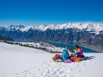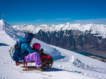 The Axalp sledging run starts with a chair lift ride from Windegg and offers a spectacular view over the ice-crested giants of the Bernese Oberland throughout. Aside from the initial section, which is slightly steeper, this intermediate sledging run passes through snow-covered pine forests and varied countryside. Source: myswitzerland.com