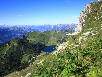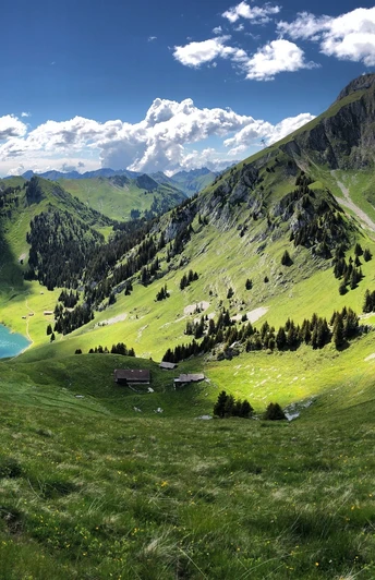 Der Abstieg ist nicht zu verfehlen, leuchtet das Ziel, das blaugrüne Auge des Hinterstockensees, doch bereits aus der Tiefe. Gleich nach Unterquerung der Luftseilbahnkabel bietet sich noch eine Variante an (nach Oberbärgli–Chrindi 1h). Abwechslungsreicher ist dagegen der Abstieg über die Alp Oberstocken und durch prächtigen Bergwald zum Hinterstockensee. Diesen umgeht man ostwärts und erreicht zuletzt leicht ansteigend den Ausgangspunkt der prächtigen Bergwanderung im Chrindi.