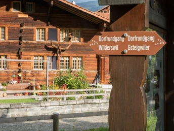 Vom Bahnhof Wilderswil führt dich der Weg entlang der Kirchgasse vorbei an historischen Holzhäusern und idyllischen Gärten. Der Bärenplatz ist seit langem ein Treffpunkt für Einheimische und Gäste. Ein schöner Brunnen steht als Wahrzeichen mitten auf dem Platz. Vorbei am Oberdorf, dem wohl ältesten Dorfteil von Wilderswil, führt der Weg zur alten Mühle, welche heute als Dorfmuseum dient. Weiter geht der Rundgang zur ehemaligen Post und entlang dem Saxetbach zur historisch geprägten Kirche Gsteig. Der Rundgang endet wieder beim Bahnhof Wilderswil.