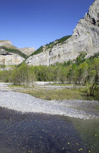 From the Hotel Gasterntal bus stop in Selden, you first make a detour to the beautifully located mountain guesthouse Heimritz. The hiking trail rises alongside the Kander, through forest and meadows, and brings you in just 30 minutes to the mountain guesthouse. For the return journey, take the natural lane that runs mostly on the left side of the river. Here, you don't have to pay attention to the path and can let your gaze wander freely. From Selden, the route leads gently downhill in a northwesterly direction. New bridges and fallen trees remind you of the power of the water, which repeatedly seeks new paths. Along the banks of the Kander, there are many beautiful places to pause and relax. Through a bright floodplain forest and over meadows, you finally reach a wide plain and the Waldhaus restaurant. From there, it goes back through the forest and over a bridge to the natural road where the bus stop is located. If you still have time, stroll downhill on the road and admire again the different colors of the water, which has a peculiar magic up here.