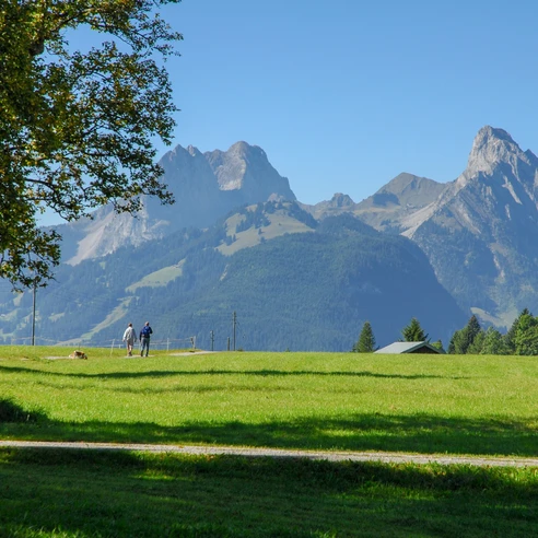 „Das letzte Paradies in einer verrückten Welt“. Dieses Zitat der Schauspielerin Julie Andrews beschreibt treffend das Miteinander von Natur, traditioneller Alpwirtschaft, Chalets und das mondäne Dorf Gstaad. Diese Wanderung lässt beide Facetten erleben und geniessen. Am Ausgangsort der Wanderung am Bahnhof Saanenmöser beachtet man die Wegweiserangabe Schönried. Nach einer kurzen Strecke ist nach rechts in den Promenadenweg abzubiegen. Übrigens charakterisiert die Strassenbezeichnung den Weg bestens. Diese erste Teilstrecke ist auch als Schönriederweg mit der Nummer 447 ausgeschildert. Unter dem Titel Geschichtsweg wird auf elf Tafeln die Geschichte der Region wiedergegeben. Auf einem meist ebenen, aber zwischendurch auch abfallenden Kiesweg erreicht man Schönried mit dem Blick auf die beiden Gipfel Gummfluh und Rübelhorn. In Schönried rechts in die Waldmattenstrasse und anschliessend links in die Grubenstrasse einbiegen. Ab hier ist der Wegweiserangabe Gstaad Panoramaweg zu folgen, auch das ist eine treffende Bezeichnung. Wenig später zweigt die Route rechts ab und führt über einen Kiesweg nach Saali. Nun lässt sich die Landschaft richtig geniessen. Eine Legende erzählt, dass Gott sich während der Schöpfung der Welt ein wenig ausruhen wollte. Der Abdruck seiner Hand soll das Saanenland geprägt haben. Die fünf Finger formten die Täler mit Gstaad im Zentrum. Abwechslungsweise über Fahrstrassen und gepflegte Kieswege, teilweise verwinkelt, führt die Wanderung über Gruben nach Gstaad. Vor der Rückfahrt lässt sich beim Flanieren im autofreien Ortszentrum der diskrete Charme dieses Dorfes erleben.