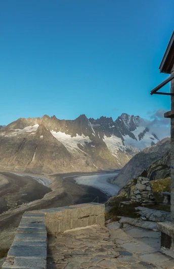 At the Grimsel Hospice, you first cross the dam and then enter a tunnel (flashlight). Afterwards, the mountain path leads along Lake Grimsel for kilometers. The view into the remote and rugged mountain world is impressive. At the end of the reservoir, you reach the former glacier forefield where a first flora gradually spreads. The glacier itself is no longer entered. On the recently created hiking trail, you reach the SAC hut and thus a great panorama of the retreating Lauteraar and Finsteraar glaciers.