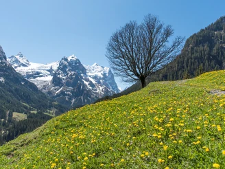 Schnell ist man zu den Alphütten Im Obersten Wandel abgestiegen. Im weiteren Abstieg über die Alp Im Mittlesten Wandel wechseln sich Alpstrassen und Wanderwege sowie Wald und Wiesen ab – oft begleitet vom rauschenden Wandelbach, welcher erst nach der vierten Überquerung bei Mettlen verlassen wird. Von hier geht es deutlich sanfter westwärts zuerst über Wiesengelände (ab Isetwald gelb markiert), dann auf einer Fahrstrasse und nochmal auf einem Wanderweg (Abzweigung bei P.985 nicht verpassen) nach Falcheren. Ab hier über Louenen bis zum Zwirgi steigt der Wanderweg wieder etwas an. Unterwegs hat man die Möglichkeit zur Reichenbachbahn abzuzweigen oder bis hinunter nach Willigen/Meiringen zu wandern. Am Endpunkt beim Zwirgi erwartet einem eine schöne Sonnenterrasse für die wohl verdiente Einkehr.