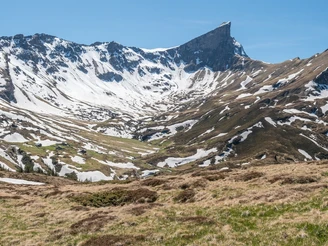 Von der Bushaltestelle Kaltenbrunnensäge überqueren wir zuerst den Reichenbach und steigen auf einer Alpstrasse – anfangs mit wunderbarer Aussicht zum steil aufragenden Wellhorn, welches von Rosenlauigletscher und Wetterhorn flankiert wird – bis zur Alp Obre Stafel (1662 m) auf. Auf einem Wiesenpfad geht es kurz weiter, bis man rechts auf einen Wanderweg abzweigt, wo sich eine Infotafel über das nun folgende Naturschutzgebiet Chaltenbrunnen mit seinem Hochmoor befindet. Durch eine immer lichter werdende Flora wandern wir entlang von zahlreichen Bächen und Tümpeln aussichtsreich und sanft aufwärts. Auf einer unscheinbaren Passhöhe (ohne Namen oder Kote auf der Landeskarte) geht rechts ein Pfad ab, welcher in 5 min auf die flache Gipfelkuppe des Gyresprung führt (1887 m) – ein lohnenswerter Abstecher, da man von hier einen schönen Rundblick von der Wandelalp mit dem darüber aufragenden Zahn des Garzen bis Brienzersee, Lungerersee und Haslital geniesst.