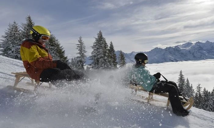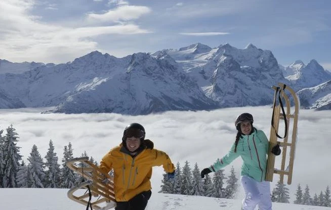 Schlitten, gutes Schuhwerk, der Witterung angepasste Kleidung, Handschuhe, Mütze und Helm, Verpflegung inkl. warmem Getränk, Notfallnumero.