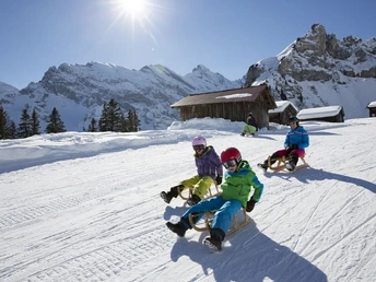 Schlitten, gutes Schuhwerk, der Witterung angepasste Kleidung, Handschuhe, Mütze und Helm, Verpflegung inkl. warmem Getränk, Notfallnumero.