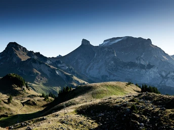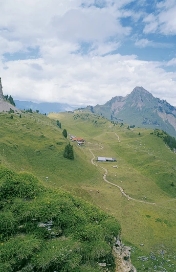 This beautiful panoramic walk begins at the mountain restaurant just above the Schynige Platte railway station. Passing the Tuba lookout point, the scenic and well-developed ridge trail provides a view of Lake Brienz and the imposing Eiger, Mönch and Jungfrau triumvirate towards Loucherhorn. At the Grätli signpost, the trail takes a sharp right turn and almost doubles back on itself before passing the mountain huts at Oberberg on the way back to the starting point.