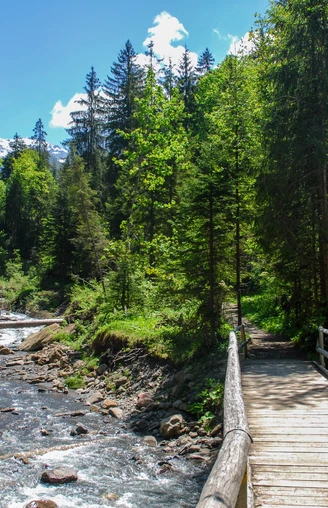 The sight of the roaring water plunging over an 80-meter-high rock face is earned from Suld on a steep circular path. Surefootedness and preferably dry weather are advantageous here. In about 20 minutes you reach a beautiful viewpoint to the waterfall. Afterwards the path becomes only slightly steeper but still climbs a good bit upwards until at the top of the Pochtenfall it crosses the bubbling stream and descends again on the other side.