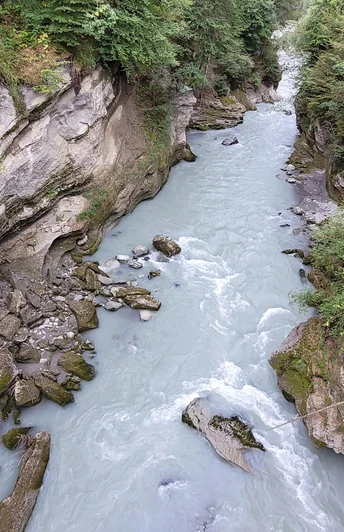 The hike leads along the lakeshore of Lake Thun through Bonstetten Park. Through the village of Gwatt, you hike steeply uphill until you reach the Burgunderweg. Here, there is a wonderful view of the Eiger, Mönch, and Jungfrau, over Lake Thun and as far as Thun. The narrow path is adorned on both sides by willows and mighty, old chestnut trees. On the ridge, the impressive powder tower, the "Strättligburg," soon appears. A little downhill, you soon reach the road and cross it. Then it goes steeply downhill for a short distance on steps. The Kander carves its way deep below through the gorge. From the Strättlig footbridge, you look deep down.