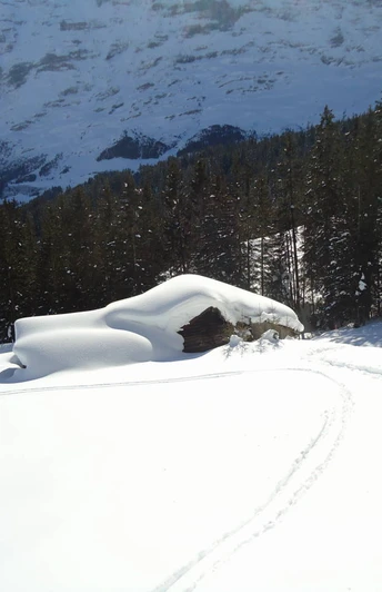 Von Aspen aus startet der Trail über verschneite Matten bergan Richtung Moosgaden. Parallel zur Skipiste steigt man stetig dem Waldsaum entgegen. Über eine verschneite Forststrasse gelangt man in den unteren Teil des Itramenwalds. Beim Punkt. 1338 Vorsassi verzweigt sich der Trail Richtung Holenstein und Brandegg. Ab dem Punkt 1338 Vorsassi, führt der Trail weiter entlang des verschneiten Forstwegs durch den Itramenwald. Nach rund 1.5 Kilometer gelangt man auf eine Waldlichtung bei Unterbrand. Abseits der Forststrasse steigt man die verschneiten Matten in angenehmen Kehren hoch. Oben am Waldsaum trifft man wieder auf den Forstweg und folgt diesem nun fast ebenen Wegs ins Gebiet Waldstafel und anschliessend hoch zur Mittelstation Holenstein.