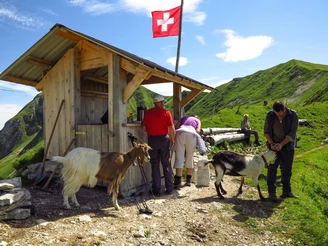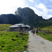 Auf gleichem Weg geht es, dem schönen Südwestgrat folgend, Richtung Schibespitz. Den aussichtsreichen Schibespitz überschreitend kommen wir so entlang des Grates bis zum Morgetepass. In den Sommermonaten überrascht uns am Pass ein kleiner »Kiosk«, mit dem Angebot von kalten Getränken und Alpkäse. Der Beschilderung in Richtung Underi Gantrischhütte folgend, steigen wir nach Norden ab, zuerst durch eine steile Bergflanke und bald auf breitem Wege. Kurz nach der kleinen Chummlihütte zweigt der beschilderte Weg zum idyllisch gelegenen Gantrischseeli ab – eine schöne Badegelegenheit an warmen Sommertagen. Von hier ist die Underi Gantrischhütte schon bald erreicht.