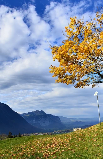 Ausgangspunkt der Wanderung bildet der Gemeindeplatz im Zentrum des Dorfes. Wir folgen die ersten rund 200 m zuerst der Strasse in Richtung Mülenen/Frutigen. Bereits wenige Meter nach Start der Route entdecken wir beim Eingang des Hallenbades schon die erste Sitzbank. Sie trägt den Namen „Lesebänkli“ weil in einer Box immer aktuelle Zeitungen bereit liegen, die zur Lektüre einladen. Wir orientieren uns nun konsequent an der Signalisation mit dem grünen Bänkli-Piktogramm auf weissem Pfeil. Kurze Zeit später haben wir den Siedlungsbereich verlassen und geniessen – zum Beispiel während einer ersten Pause auf dem Bänkli, auf welchem schon Wilhelm Tell oder zumindest der Schauspieler des gleichnamigen Freillichtspieles sass – die Aussicht auf dem Hausberg Niesen. Humorvoll verspielt ist die nächste Sitzgelegenheit, die „Örgeli-Bank“. Man wäre nicht erstaunt, wenn plötzlich Musik erklingen würde. Nach dem Aufstieg zur Sewenegg eröffnet sich dann auch der Blick ins Kandertal. Einzig die oftmals hier weidenden Lamas und Alpakas lenken vom Panorama ab. Dem Waldrand folgend gelangen wir zum Parkplatz in Aeschiried, wo Hunger und Durst im Restaurant Panorama gestillt werden können. Gestärkt treten wir die weitere Route, die durch das recht steil ansteigende Allmigässli führt, an. Wir betrachten fasziniert die kunstvolle Rücklehne des Haflinger-Bänklis und entdecken gleich oberhalb die nächste Sitzgelegenheit, das als Beweis der ewigen Liebe seit der Vermählung eines Paares dort steht. Wir steuern nun als Ziel die gut sichtbare Alphütte an, wo der dort produzierte Alpkäse in einem Kühlschrank zum Kauf angeboten wird. Nun verlassen wir unterhalb der Skihütte das Fahrsträsschen und folgen der Wegspur über das freie Feld zu den in Reih und Glied stehenden vier Lärchen. Wir haben den höchsten Punkt des Rundweges erreicht und geniessen auf dem Niesen-Bänkli sitzend das gewaltige Panorama, das sich zu unseren Füssen eröffnet. Weit im Horizont erkennen wir bei gutem Wetter sogar die Jurakette. Kein Wunder gilt diese Stelle als Ort der Kraft… Davon haben wir nun genügend getankt und spazieren über die Weide hinunter zum Strässchen, dem wir bis zum ehemaligen Ferienzentrum nach rechts folgen. Vor den Häusern führt der Weg links über die Wiese hinunter. Wahrlich gastfreundlich präsentieren sich zwei weitere Zwillingsbänke auf der Windegg. Im Winter schätzen es viele Eltern hier bequem sitzend ihren Kindern zuzuschauen, wie diese über die einfache Piste zum Start des Schleppliftes hinunterkurven. Der weitere Wegverlauf führt angenehm hinab, vorbei am Chemihütte-Bänkli unterhalb des gleichnamigen weit über die Region hinaus bekannten Restaurant-Betriebes. Bald ist das Tannenmattli-Quartier erreicht. Wir schlängeln uns zwischen den Häusern durch und verlassen bereits wieder den Siedlungsbereich. Der Weitblick und die Offenheit haben wahrscheinlich auch die hier wohnhafte Bauernfamilie beeinflusst. Hier befindet sich nämlich der schweizweit einzige Regenwurmstall, wo Tausende von fleissigen Tierchen tagtäglich feinste Komposterde produzieren. Das kurze Zeit später auf der rechten Wegseite stehende Bänkli hat als Rücklehne ein exaktes Abbild des Thunersees. Rund zehn Minuten später haben wir die von Krattigen herkommende Hauptstrasse erreicht, der wir für einen knappen Kilometer bis ins Dorfzentrum folgen. Kinder vergnügen sich auf dem Spielplatz neben dem Schulhausplatz. Passend dazu steht dort das grosszügig bemessene „Familien-Bänkli“, auf dem eine ganze Familie bequem Platz findet. Bereits haben wir wieder den Startpunkt der erlebnisreichen Wanderung erreicht.