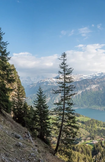 Von der Bergstation Niederhorn geht es zuerst über den aussichtsreichen Grat bis zur Alp Oberburgfeld. Auf wunderbaren Wanderpfaden steigt man hinab zur Alp Unterburgfeld. Bei der Wanderwegverzweigung Unterburgfeld wählen wir den Weg zwischen den Alphütten hindurch und steigen hinab zur Wegkreuzung bei P.1527. Hier folgen wir dem Wegweiser Bire Aussichtspunkt. Durch lichten Tannenwald führt der Weg nun zuerst ostwärts. Nach einem kurzen Abstieg kehrt der Wanderweg und führt zwischen Felsbänder nun wieder westwärts bis zur Bire. Der Gipfel des markanten Felsturm wird über eine steile Treppe erreicht. Neben der grossartigen Aussicht auf den Thunersee und die Berner Hochalpen finden sich auf dem kleinen und schattenspendenden Felsplateau auch Sitzbänken.