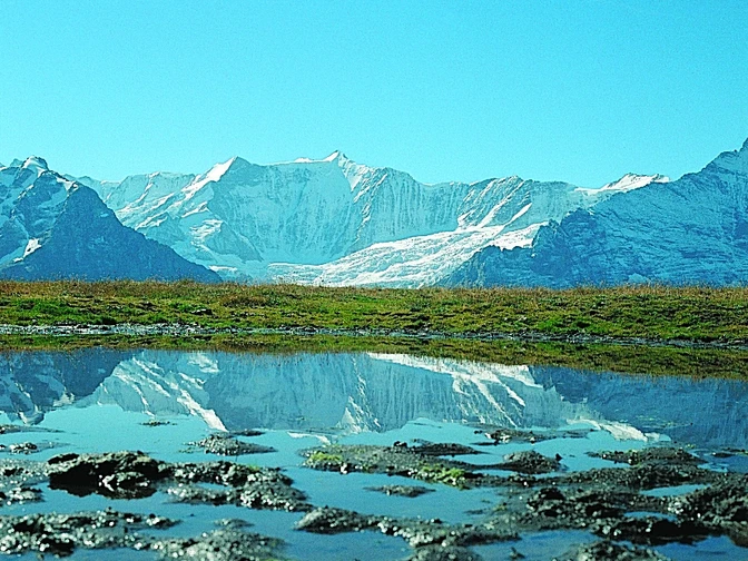 Von der Gondelbahn-Endstation First wandert man auf dem Faulhornweg zur Wegverzweigung Widderfeld. Bereits sind die Hütten im Bachläger zu sehen (zum Bachalpsee 1h). Der vorzüglich angelegte, gut begehbare Weg zieht sich steil durch felsdurchsetztes Gelände hinunter. Vorsicht bei Nässe, wenn der schiefrige Boden rutschig wird! Auf einem Alpsträsschen erreicht man bald das Berghaus Waldspitz. Kurz danach zweigt ein Pfad hangwärts ab und führt, gesäumt von Bergfichten und Heidelbeersträuchern, durchs Trümmermaterial des Berghangs. Die Felsen zwischen Furggehorn und Uf Spitzen markieren den Rand der Abbruchnische eines gewaltigen nacheiszeitlichen Bergsturzes, der das vielgestaltige hügelige Landschaftsbild bis hinab zur Station Schwendi im Talgrund geschaffen hat.