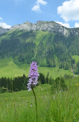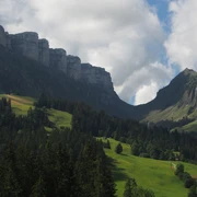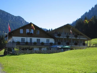 Am Ausgangsort gilt es der Wegweiserangabe Obere Breitwang zu folgen. Nach einer kurzen Strecke auf Hartbelag steigt man auf einem Pfad durch Wald, kurz über eine Wiese und wieder durch Wald an. Kurz vor dem Ferienheim wird ein Rastplatz erreicht. Hier ist die Sichle, der Passübergang zwischen Gemmenalphorn und Sigriswiler Rothorn gut zu sehen, charakteristisch ist die runde Ausformung. Das Ferienheim wurde 1917 als gemeinnützige Institution für die „Ferienversorgung“ gegründet, um bedürftigen Kindern einen Erholungsaufenthalt zu ermöglichen. 1971 wurde das Heim in Fronarbeit als Gemeinschaftswerk neu erstellt. So soll es weiterhin als Oase der Ruhe und Ort der Besinnung dienen. Weiter geht es auf einer Fahrstrasse bis Obere Breitwang. Hier rechts abbiegen, es gilt jetzt die Richtung Grüenebergpass eizuschlagen. Nach einem ersten Abschnitt aufwärts über eine Weide in den Wald eintreten, wo der Pfad zick-zack-artig weiter ansteigt. In einer Spitzkehre mit der Abzweigung zum Trogehorn geradeaus Richtung Grünebergpass weiter gehen. Nun schliesst sich ein aussichtsreiches Teilstück entlang dem Hang an, zuerst ohne grössere Höhenunterscheide, dann abwärts. Bei Pkt. 1477 erreicht man eine Fahrstrasse, der Wegweiser zeigt nun schon die Angabe Innereriz/Säge an. Nun als Wanderweg signalisiert, führt die Route im Zickzack abwärts. Bei Fall wählt man den Feldweg über Hindere Sol nach Innereriz. Nach einem kurzen Anstieg geht es meistens über Weiden und kürzere Abschnitte durch Wald abwärts bis Innereriz.
