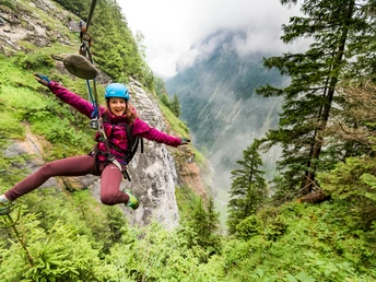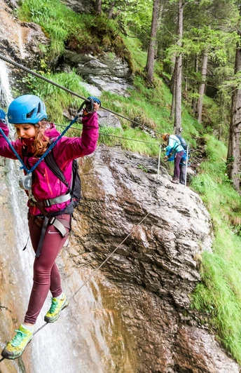 Bei Unerfahrenheit ist es ratsam, den Klettersteig zusammen mit einem Bergführer zu absolvieren. Wir begeben uns nur bei gutem Wetter in die Wand – und verlassen diese bei einem Wetterumsturz oder Gewittergefahr umgehend. Ein Karabiner bleibt immer am Sicherungsseil.