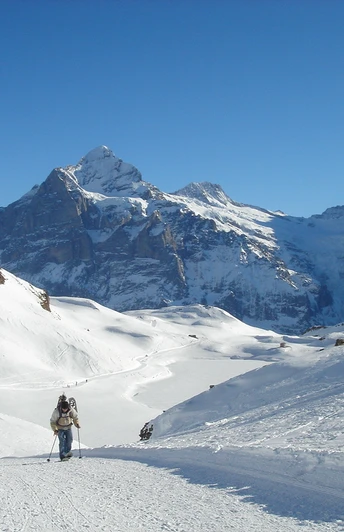 Für den Rückweg wird zunächst auf gleicher Route nach Gassenboden abgestiegen. Von dort gehts ostwärts weiter. Sehr zu empfehlen ist eine Abfahrt mit dem Schlitten. Bei guten Schneebedingungen kann bis nach Grindelwald hinunter gefahren werden. Nicht weniger als 15 km misst diese einzigartige Strecke; sie gilt damit als längste Schlittelabfahrt der Welt. Doch auch wer zu Fuss unterwegs ist, kommt beim Abstieg nicht zu kurz. Das Trassee wird mit Pistenfahrzeugen breit gepfadet und bietet damit Schlittlern und Wanderern mehr als genug Platz. Der Abstieg ist zudem nicht übermässig steil. Lediglich zu Beginn muss ein recht deutliches Gefälle in Kauf genommen werden. Danach gehts auf angenehmem Weg zum Oberläger hinunter und von dort zur Bussalp.