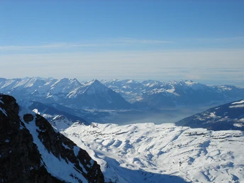 Im Gassenboden rückt das Ziel, der Gipfel des Faulhorns mit dem Berghaus, in Sichtweite. Diesen kleinen Abstecher mit ein paar Dutzend zusätzlichen Metern Aufstieg sollte man keinesfalls scheuen, denn die Aussicht vom Gipfel ist grandios. Im Norden öffnet sich die Perspektive auf den Brienzersee und die Augstmatthorn-Kette; im Osten ragen die Zacken des Schwarzhorn-Massivs und des Wetterhorns in die Höhe; gegen Süden hin setzt sich die Gipfelparade mit Schreckhorn, Finsteraarhorn und Eiger fort; und im Westen breitet sich das Lauterbrunnental aus, das am Horizont vom Blüemlisalp-Massiv abgerundet wird. Es war eine Pioniertat ohnegleichen, als im Jahre 1830 auf dem Faulhorn das damals höchstgelegene Berghotel Europas errichtet wurde. Das Berghaus, das sich förmlich in den Südhang der 2680 m hohen Gipfelkuppe schmiegt, zeugt von der Frühzeit der touristischen Entwicklung im Schweizer Alpenraum, ist aber auch heute ein attraktiver Anziehungspunkt für Ausflügler. Der Betrieb ist nur in den Sommermonaten geöffnet.