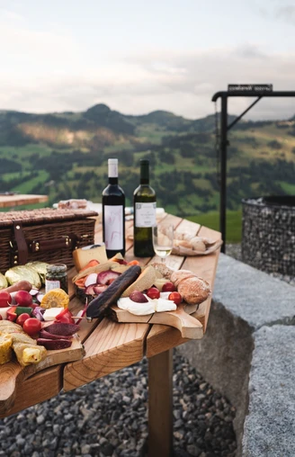 Der Fahrweg zum Rellerli biegt nun in die bewaldete Mulde des Hugeli ein und führt nach der Alphütte sanft steigend zum Berghaus und zur ehemaligen Bergstation der Gondelbahn auf dem Rellerligrat. Hier könnte man sich stundenlang in die prächtige Rundsicht vertiefen.