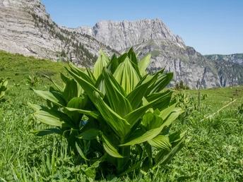 Von der Bushaltestelle bzw. dem grossen Parkplatz folgt man der Beschilderung in Richtung Grimmifurggi. Ein Stück des Weges begleiten uns dabei die Spielposten des Themenweges um den Zwerg Grimmimutz. Bei der Wegkreuzung P.1409 verlassen wir den Grimmimutz – während der Themenweg links abzweigt gehen wir geradeaus und wandern über die Alpstrasse bis hinauf zu traumhaft gelegenen Alp Grimmi (P.1739). Der in der Landeskarte eingezeichnete Wanderweg ab P.1509 ist nicht mehr ausgeschildert und ist auch kaum mehr begehbar. Auf der Alp Grimmi ist eine Rast auf der schönen Sonnenterasse äusserst verlockend. Sanft geht es auf einem Wanderweg noch etwas weiter aufwärts bis zu einer Wegkreuzung etwas hinter (südlich) der Kuppe P.1844. Hier verlassen wir den Wanderweg zur Grimmifurgge und biegen links ab dem Schild in Richtung Uelis Grimmi folgend. Auf einem fast ebenen Höhenweg wandert man aussichtsreich in einem grossen Linksbogen durch das hübsche Hochmoor Grimmi. Hier wachsen unter anderem zahlreiche Weisse Germer, eine schöne aber auch eine stark giftige Pflanze.