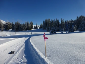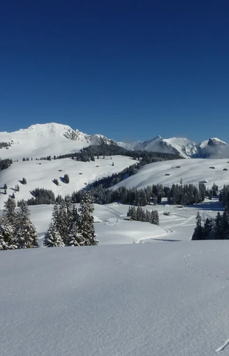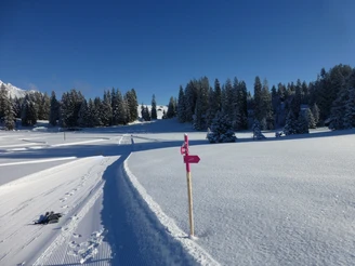 Eine abwechslungsreiche, leichte Winterwanderung mit Start und Ziel beim Restaurant Jaunpass. Eine Winterwanderung ist immer anstrengender als eine vergleichbare Sommerwanderung. Wichtig ist eine geeignete Ausrüstung, angepasst an Temperatur- und Schneeverhältnisse. Empfehlenswert ist eine Kleidung nach dem Zwiebelprinzip. Am wichtigsten sind gute, hohe und warme Schuhe mit griffiger Sohle. Wanderstöcke sind fast ein Muss, sie erleichtern das Gehen im Schnee enorm. Ein leichter Rucksack mit etwas Getränk und Zwischenverpflegung gehört auch dazu.