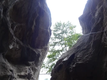 Schwindelfreie setzen die Wanderung anschliessend via die neue Hängebrücke Leiternweide fort und steigen über Treppen und Stege in die Buuscheschlucht ab. Auf einer Lichtung zeugen die Ruinen des ehemaligen Weissenburgbads von feudalem Kur-Tourismus früherer Zeiten. Die 1974 abgebrannte Hotelanlage des vorderen Kurhauses wies einen (ebenfalls aufgegebenen) Vorläufer weiter hinten in der engen Schlucht auf. Über den einstigen Promenaden-Weg, auf dem vormals die Kurgäste das Hotel erreichten, gelangt man zur Bahnstation Weissenburg, die am Hang oberhalb des Dorfs liegt.