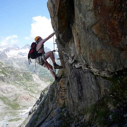 Dieser leichte Klettersteig ist ideal für Einsteiger und als Vorbereitungstour für den Tälli Klettersteig auf der gegenüberliegenden Talseite. Beim Parkplatz Umpol oberhalb des Hotels Steingletscher beginnt der Bergwanderweg Richtung Tierbergli. Weiter oben führt ein Klettersteig durch eine abwechslungsreiche Landschaft von Fels und Flora hinauf auf die Felskanzel, die über dem ganzen Tal thront und auf der die Tierberglihütte steht. Die Rundsicht hat alpine Atmosphäre: Südwärts der Steingletscher, zur Linken das prächtige Sustenhorn, zur Rechten der Vorder Tierberg und Giglistock und nach Norden das Gadmental, begrenzt durch die beeindruckenden Felswände der Wendenstöcke. Der Abstieg über den Bergwanderweg dauert ca. 1.5 h.