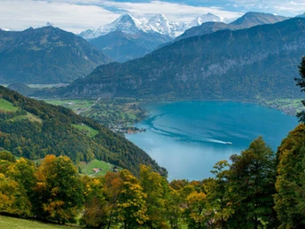 In Beatenberg angelangt, laden zahlreiche Gaststätten auf dem Weg zur Station der Niederhornbahn zu einem ausgedehnten Rasthalt – schliesslich lockt nicht nur Speis und Trank, sondern in der Regel auch eine unvergleichlich schöne Aussicht auf den Thunersee und die Berge. Hinter dem Gebäude der Bahn-station geht die Wanderung erst einmal über eine Treppe weiter nach Beatenbucht. Die Route – zuerst noch über Asphaltstrassen – wird auf den Wiesen- und Waldpfaden immer ein wenig steiler. Die Strecke ist allerdings sehr gut zu bewältigen. Schöne Ausblicke und eine faszinierende Flora und Fauna lassen dabei immer wieder innehalten. Zwei Mal kreuzt der Weg die Strecke der Drahtseilbahn, die Beatenberg mit der Bucht verbindet. Vom Schocken geht es über das Birchi und den Sack schliesslich nach Fisch-balmen. Von dort sind die letzten Meter zur Beatenbucht richtig erholsam. Am Ziel – der STI-Haltstellen «Beatenbucht» – bietet sich noch einmal die Gelegenheit, das Warten auf den Bus mit einer Rast im Restaurant direkt am See zu geniessen.