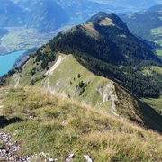 Nach einem weiteren recht steilen Anstieg ist die Ällgäulücke, der Gratübergang zum Kemmeribodenbad, erreicht. Fesselnd ist nicht allein die Sicht auf Brienzer Rothorn, Titlis und ins Sustengebiet; ebenso packend ist der Ausblick zu Faulhorn, Gärstehorn, Wildgärst und Axalp und den dahinter aufragenden Berner Hochalpen. Tief unten liegen Meiringen und der Brienzersee. Gegen Norden beherrschen Hohgant, die helle Schrattenflue mit dem markanten Schibengütsch und der Kemmeriboden-Einschnitt den Horizont.