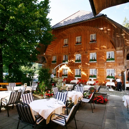Über Alpweiden gehts nun, die Hütten von Ober Läger links liegen lassend, auf den Fahrweg, der zur Alp Ällgäuli hinunterführt. Durch Wald und über eine sumpfige Hangmulde erreicht man die Mirrenegg, von wo ein Alpsträsschen zur jungen Emme hinunterführt. Bei Hinter Hübeli wechselt das Strässchen auf die linke Seite der Emme. Der junge Fluss gebärdet sich hier wie ein Wildbach. Die Schuttkegel der einmündenden Bäche lassen ahnen, wie gefährlich das Wasser nach Gewittern anschwillt. Wohltuend wirkt dagegen die behagliche Gemütlichkeit, die das gastliche Kemmeribodenbad mit seinen mächtigen Dächern ausstrahlt.