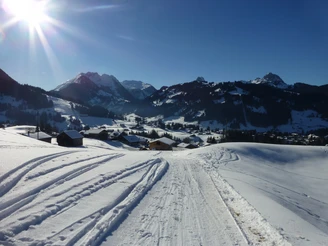 Im ersten Teil bis Bissen, besticht die Wanderung durch wunderbare Ausblicke auf Gstaad und in die umliegenden Täler und an die nahen Hügelzüge. Via die Einzelhöfe des Troms gelangt man hinunter zum Louwibach. Dem Sommerwanderweg folgend führt der Weg stets dem winterlichen Bach entlang zum Parkhaus Litzi / Louwibachbrügg in Gstaad. Hier endet der Winterwanderweg. Durch die verkehrsfreie Promenade gelangt man in wenigen Minuten zum Bahnhof von Gstaad.