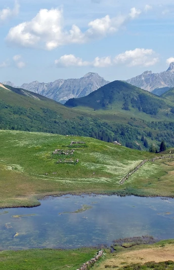 Ab Gstaad bringt uns das Postauto vorbei an Feutersoey und Gsteig durch die schöne Landschaft zum Ausgangspunkt Col du Pillon im Kanton Waadt. Die meisten Postautopassagiere eilen zur Seilbahnstation Glacier 3000. Wir beginnen mit der Wanderroute 46 «Tour des Alpes Vaudoises» Richtung Lac Retaud – Col de Voré – Arnesee – Feutersoey. Bald wird der Weg recht steil und nach einer guten halben Stunde erreicht man den kleinen, idyllisch in die Landschaft eingebetteten Lac Retaud. Nach einer kurzen Rast geht es weiter auf einem kurzen, recht flachen Wegstück. Anschliessend quert man ein altes Bergsturzgebiet und nimmt den letzten Anstieg zum höchsten Punkt der Wanderung (1918 m ü.M.), dem Col de Voré, in Angriff. Die Alpenflora ist wunderschön und auf der Passhöhe geniesst man einen grossartigen Rundblick zum Diablerets-Gebirge und dem Cape au Moine. Auf gutem Weg geht es nun leicht bergab an Moortümpeln und einem kleinen See vorbei, der von Enten und Blässhühnern bevölkert ist. Von Weitem sieht man den Stausee Arnesee mit dem Tschärzisbach als Zu- und Abfluss. Von der Alp Seeberg steigt man hinunter zum See und geht angenehm dem schönen Ufer entlang zur Staumauer. Eine Rast mit Blick auf den See wirkt entspannend. Ab der Staumauer geht man Richtung Hindere Walig – Tuxberg. Stellenweise läuft man über weichen, oft feuchten Moorboden. Hartbelag hat es nur auf dem letzten halben Kilometer nach Feutersoey. Voller Eindrücke von der interessanten Tour besteigen wir bei der Haltestelle Dorf das Postauto, das uns wieder zum Bahnhof Gstaad bringt. Je nach Umsteigezeit kann man noch den schönen, gepflegten Nobelort erkunden.