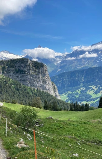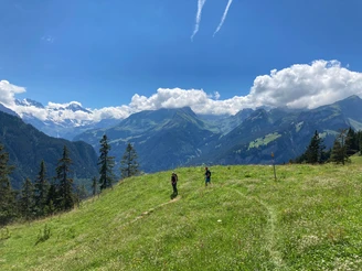 Im ussren Blatti tritt man auf die offene Alpweide. Herrlicher Tiefblick auf Isenfluh und ins Grindelwaldtal. Noch gilt es bis zur Iseltenalp 200 Höhenmeter zu bewältigen. Bei den Hütten von Usserläger überblickt man den ganzen fruchtbaren Weidekessel der Alp Iselten und steigt durch die sonnige Halde zum Oberberg auf; ab hier führt der vom Faulhorn kommende Wanderweg zur Station, zum Alpengarten und zum Hotel auf der Schynigen Platte.