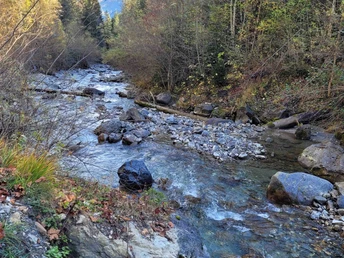 Oeschseite ist eine Siedlung zwischen Zweisimmen und Saanen, die über einen eigenen Bahnhof verfügt (Halt auf Verlangen). Ab der Station folgt man dem Wegweiser Simmegrundweg in Richtung Saanenmöser. Bald führt der Weg abwärts in den Talgrund und führt unmittelbar nach der Hängelibrügg nach rechts an die Kleine Simme. Über Stock und Stein verläuft der Weg nah am Bach. Es rauscht und sprudelt, dass es für die Wandersleute und die Fische eine Freude ist. Blockriegel, Wasserbecken und Totholz sorgen dafür, dass sich die Bachforellen in der Kleinen Simme wohlfühlen. Nach etwa zwei Kilometern quert man den Bach über einen Steg, ruhiger geht es nun vorbei an einer Feuerstelle, einem Seilpark und dem Freibad nach Zweisimmen. Ein Halt im Dorf am Rinderberg lohnt sich. Gestärkt kann die Wanderung nach der Unterquerung des Bahnhofs fortgesetzt werden. Nach links den Gleisen folgend, trifft man wieder auf die Kleine Simme und begleitet diese auf ihren letzten Metern quer über den Talboden. Unterhalb des Flugplatzes verschwindet die Kleine Simme von der Landkarte, geschluckt von ihrer grossen Schwester, die von hier ziemlich begradigt durch das offene Simmental fliesst. Etwas auf Distanz zum Wasser führt der Wanderweg nach Grubenwald. Während sich die Simme über den Laubeggfall stürzt, umgeht der Weg die Anhöhe Laubegg auf der westlichen Seite. Nach einer Brückenquerung bei Garstatt legt man von Weissenbach bis Reidenbach ein längeres Flachstück auf teilweise asphaltierten Strassen zurück. Wilder präsentiert sich die Schlussetappe von Schintibrügg entlang der Simme bis nach Boltigen.