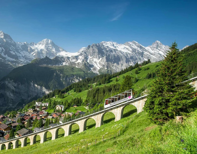 La montagne de Mürren, l’Allmendhubel, s’élève à 1907 m d’altitude. En seulement 4 minutes, vous arrivez de Mürren à cette grande destination d’excursion pour les amoureux de la nature. Que diriez-vous d’un menu raffiné ou d’une boisson rafraîchissante au restaurant panoramique Allmendhubel? D’ici, vous profiterez d’une vue magnifique sur l’Eiger, le Mönch et la Jungfrau. Les enfants sont les bienvenus et peuvent se défouler sur l’aire de jeux «Flower Park» avec ses immenses fleurs alpines, ses herbes et ses insectes surdimensionnés. Le «Flower Trail» est une expérience pour tous les sens, lors de laquelle vous pouvez admirer plus de 150 fleurs de montagne telles que les edelweiss, les gentianes et les roses des Alpes.