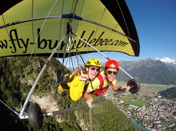Le pilote de BumbleBee Hanggliding viendra vous chercher sur l’aire d’atterrissage, située en plein cœur d’Interlaken, ou à la gare. Vous vous rendrez ensuite en bus jusqu’à l’aire de départ, à Beatenberg, où le deltaplane sera installé. Après que le pilote vous aura fait part des consignes de sécurité, vous pourrez vous lancer. Une fois dans les airs, vous profiterez d’une splendide vue sur les lacs de Thoune et de Brienz, ainsi que sur l’Eiger, le Mönch et la Jungfrau. Après 10 à 20 minutes de vol, vous vous poserez sur les roues en douceur à Interlaken. Cette expérience restera longtemps gravée dans votre mémoire.
