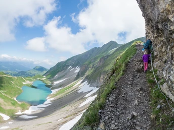 De la station Rothorn à l'hôtel et à la station supérieure du téléphérique Sörenberg–Brienzer Rothorn, avant d'atteindre le sommet du Brienzer Rothorn. La vue depuis cette montagne haute de 2349 m est grandiose : vers le nord, par temps clair, on distingue à travers le Mittelland et le Jura la Forêt-Noire, les Vosges et la plaine du Rhin séparant ces deux chaînes. Les sommets s'enchaînent du Säntis au nord-est, en passant par les Alpes glaronaises et centrales suisses jusqu'aux Alpes bernoises et aux Diablerets au sud-ouest. Une couronne montagneuse continue d'une force et d'une beauté impressionnantes !