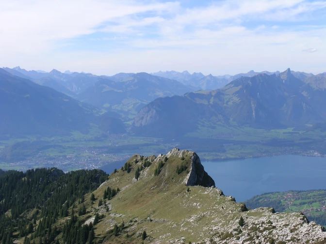 Erholsam ist die Wanderung durch die Weidemulde zur Hütte Unterbergli. Die Richtung beibehaltend steigt man nun durch überwachsene Karstlandschaft zum Wegweiser und zur Hütte Oberbergli auf. Immer häufiger windet sich der Weg zwischen den tief ausgewaschenen Kalkfelsen hindurch. Kurz nach der Hütte verzweigt er sich. Hart an der Fluhkante führt der Felspfad über eine Bergschulter zu Pkt. 1891 am Sigriswiler Rothorn hinauf (von hier aus ist der 2051 m hohe Ostgipfel über Karstfelder in 30 min zu erreichen – nur für berggewohnte, trittsichere Wanderer!). Der weitere Weg ab Pkt. 1891 setzt Schwindelfreiheit und absolute Trittsicherheit voraus.