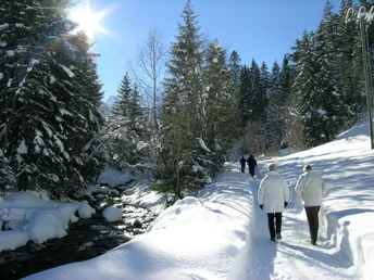 Pour parcourir le trajet lors des plus courtes journées d'hiver, il est conseillé de choisir la pause de midi afin de profiter du rare soleil d'hiver. La courte durée d'ensoleillement en plein hiver a en outre l'avantage que la neige reste longtemps au sol. Des sapins enneigés et des prairies et pâturages recouverts d'une couche dense de neige marquent ainsi le paysage – voici l'hiver dans sa plus belle forme.