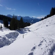 Vous pouvez parcourir soit la première étape (Flösch-Unterburgfeld) soit la seconde (Oberburgfeld-Chüematte), puis suivre le sentier hivernal balisé. Attention à la réserve de chasse toute proche.