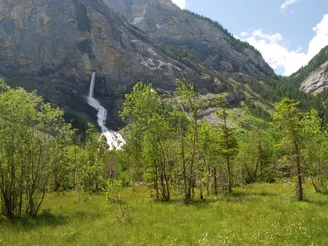 Der Gelbe Frauenschuh ist eine wildwachsende Orchidee, die in der freien Natur nur noch sehr selten vorkommt. Daher ist die Pflanze geschützt und darf weder gepflückt noch ausgegraben werden. In der Schweiz gibt es nur wenige bekannte Plätze, wo der Frauenschuh wächst. Einer davon ist das Gasteretal bei Kandersteg. Hier blüht die Pflanze meist nur für kurze Zeit, von Mitte bis Ende Juni und dies nur an wenigen versteckten Plätzen. Einer davon befindet sich unweit des bekannten "Gasteregesichts". Durch die eindrückliche, im Frühling von Schmelzwasser tosende Chlus und durch das wunderbare Gasteretal erreicht man diesen Platz am besten zu Fuss. Unterwegs bei Waldhus beeindruckt der Geltenbachfall mit seiner Schmelzwasserfontäne, die sich aus einer Höhle im Fels 70 Meter in die Tiefe stürzt. Kurz vor Selde steigt der Wanderweg in Schlangenlinien durch ein Waldstück auf die Fahrstrasse auf. Nach etwa 100 Metern auf der Strasse hält man links und folgt der Forststrasse. Hier stösst man nahe am Wegrand auf den seltenen Frauenschuh. In der ersten Wegkehre der Forststrasse lässt sich im nahen Felsen mit etwas Fantasie auch das "Gasteregesicht" erkennen. Zurück auf der Gasteretalstrasse folgt man dem Wanderweg taleinwärts bis Selde.
