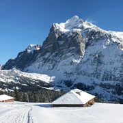 Beim Aussteigen in der Bergstation First scheiden sich die Benutzerströme rasch. Während es die Bretterträger talwärts oder, mit dem Oberjoch-Express, noch weiter hinauf in die Höhe zieht, streben die Wanderer zügig an den Skipisten vorbei in die winterliche Stille nordwestlich des Berghauses. Von der Gummihitta gehts noch rund 20 min weiter westwärts, bis sich die Wege verzweigen: geradeaus Richtung Bachalpsee–Faulhorn, links hinunter Richtung Bort.