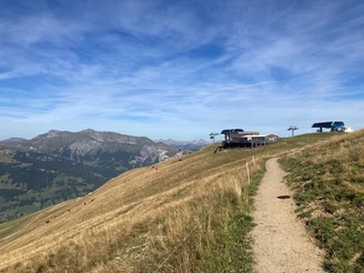 Von der Bushaltestelle Bühlberg führt die Wanderung über einen Alpweg gemächlich auf den Hahnenmoospass. Hier eröffnet sich der Blick ins Entschligetal Richtung Adelboden. Der Hahnenmoospass ist als Mekka der Segelmodell-Flieger bekannt. Das Restaurant auf dem Pass betreibt dazu eigens ein Baulokal. Vom Hahnenmoospass aus folgt man der Wegweiserangabe Metschstand. Kurzum erreicht man den Speichersee, der im Winter für die Beschneiung der Pisten sorgt. Im Sommer soll der See in Zukunft als Erlebnispunkt das Wandergebiet bereichern (Badeverbot!).