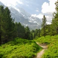 La pente est un peu plus douce entre Alpiglen (point de départ de « l’Eiger-Trail ») et Arvengarten. La face nord de l’Eiger s’élève puissamment. Bien que 150 à 200 alpinistes gravitent cette face chaque année, les accidents mortels depuis la première ascension en 1938, totalisant 50 victimes, restent relativement limités. De plus en plus, les parois escarpées du Mönch et de la Jungfrau ainsi que le Silberhorn parfait en avant-plan apparaissent. Des mélèzes sombres composent le premier plan pittoresque. Là où même ils ne subsistent plus, le col de la Kleine Scheidegg est à portée de main (point de départ du chemin de fer de la Jungfrau, inauguré en 1912). L’agitation touristique est concentrée autour du nœud de communication.