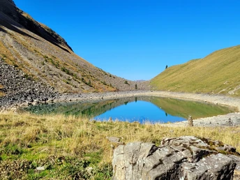 Es zieht sich, noch eine Kurve, dann noch eine Stufe und plötzlich ist es da: Umgeben von Alpen, Fels und viel Geröll empfängt das Meiefallseeli die Wandersleute mal grün, dann schimmert es blau, und wenn Wolken am Honiesen aufziehen, kräuselt es sich grau. Der kleine Bergsee weit hinten und hoch oben im Diemtigtal geizt nicht mit Reizen, doch der Weg dorthin ist mehr als ein Spaziergang. Wer mit dem Postauto anreist, startet beim Halt Horboden/Chirel. Die Wanderung beginnt mit einem abwechslungsreichen Aufstieg in Richtung Rothbad. Von Hormatti bis Pletschen verläuft die Route meist auf Hartbelag, danach geht es über einen Alpweg, Alpweiden und Waldpartien hoch zum Under Meiefall. Von dort führt ein Bergweg zu den Hütten und Alpen in Ober Meiefall. Quellen und Bächlein sprudeln aus dem Boden, der Blick schweift zum nahen Wiriehorn und zur fernen Stockhornkette – ein eindrückliches Panorama. Es folgt ein letzter Aufstieg auf 1902 Meter, wo der Anblick des Meiefallseeli schon aus der Ferne entzückt. Das Bergpanorama spiegelt sich im normalerweise kristallklaren Wasser, das in einem von Felsen und Geröll durchsetzten Kessel ruht. Fast ist man nach dem langen Aufstieg versucht, hineinzuspringen. Doch das Wasser ist meist eisig kalt. Im Bergfrühling und Herbst ist es an diesem Ort zudem einsam und still, im Alpsommer teilt man den schönenFlecken mit Rindvieh und Kuhglockengebimmel. Wer sich von der Idylle losreissen kann, kehrt auf gleichem Weg zurück in den Under Meiefall. Dort kann der Weg in Richtung Springenboden gewählt werden. Auch hier gilt es allerdings eine längere Strecke auf Hartbelag zurückzulegen. Als Belohnung winken im Springenboden ansprechende Möglichkeiten zur Einkehr. Danach folgt der letzte Abstieg an den Ausgangspunkt im Tal.